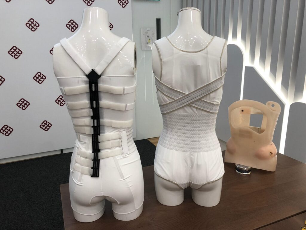 香港理工大學紡織及製衣學系宣佈,成功研發兩種「可動式矯形腰背架」,將配備形狀記憶合金(SMA)支架或人工鉸鏈,可更有效、舒適、美觀地矯正青少年脊柱側彎問題,兩者成本約1,500港元,比傳統腰背架便宜近2,500港元。