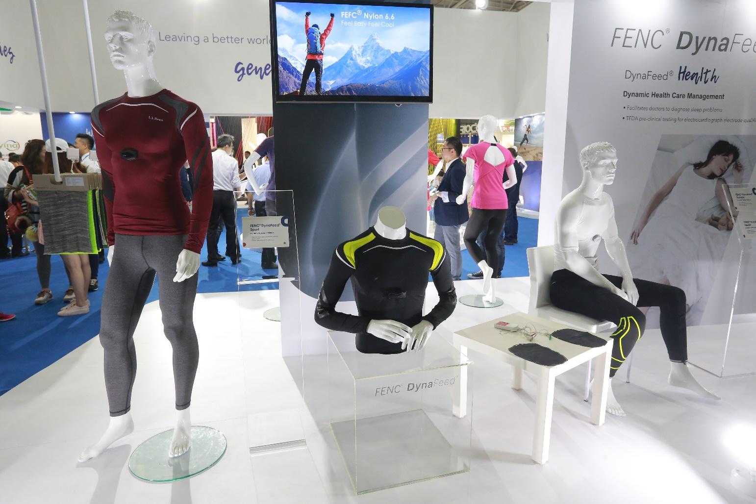 圖片說明:台灣紡織企業於2017年台北紡織展(TITAS)展出智慧衣技術方案。