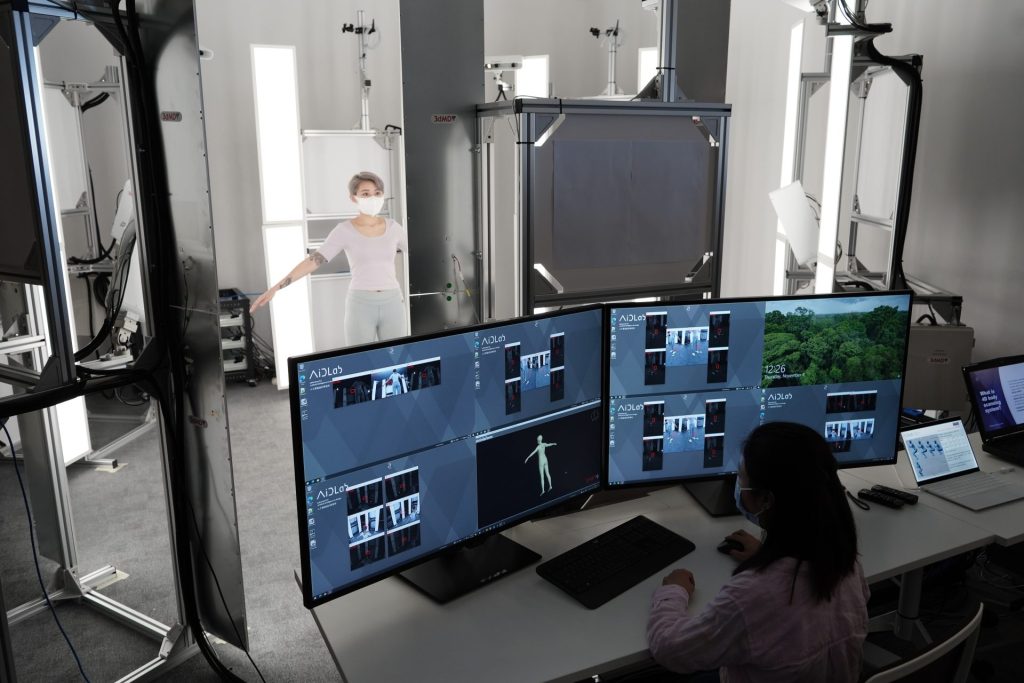 人工智能設計研究所(AiDLab)由香港理工大學及英國皇家藝術學院共同創建,透過研究將人工智能應用於不同設計範疇。其中一個創新設施「4D人體掃描實驗室」,可協助研究所取得動態中人體表面變化的數據,經整合後利用AI技術預測不同人體形態的壓力及溫度分佈等,將有助提升功能性壓力衣物及醫療保健服裝、紡織品及可穿戴產品的設計。