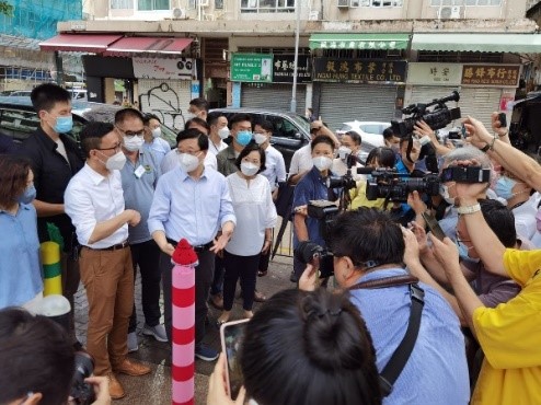 適逢香港特別行政區成立25周年,行政長官李家超早前親自到訪深水埗區期間,亦被各款生動可愛的針織蔬果吸引,專程參觀Yarn Bombing@SSP展區並駐足細看。特首更特意邀請負責設計織物角色的學生帶同針織品,大談他們的創意來源。