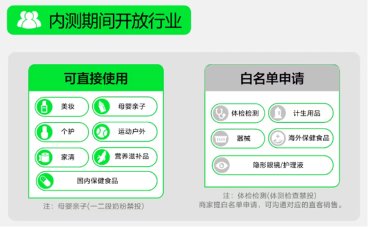 從這一點來看,對於目前難以建立優勢的標品行業,小紅書電商的最優解還是開放合作,但同時也需要給自己留下足夠的發展空間。因此在與淘寶天貓達成最新合作時,小紅書內測期間僅開放了美妝、母嬰、個護、運動戶外、家清、營養保健等行業,服飾等優勢類目仍是牢牢掌握在自己手中。