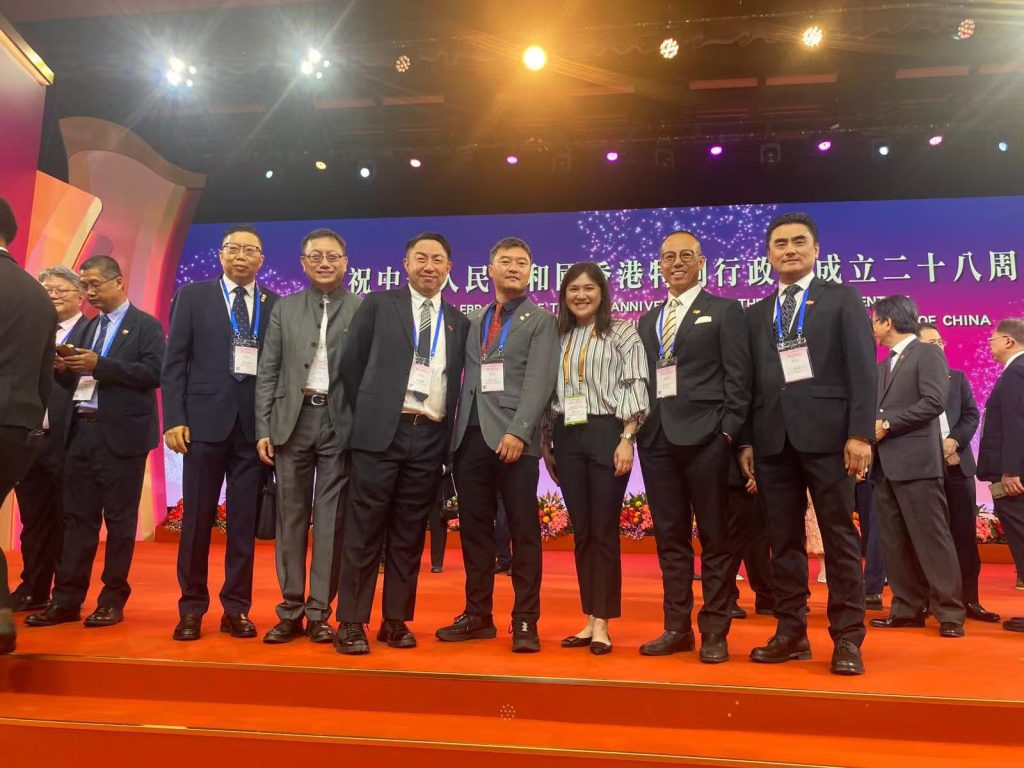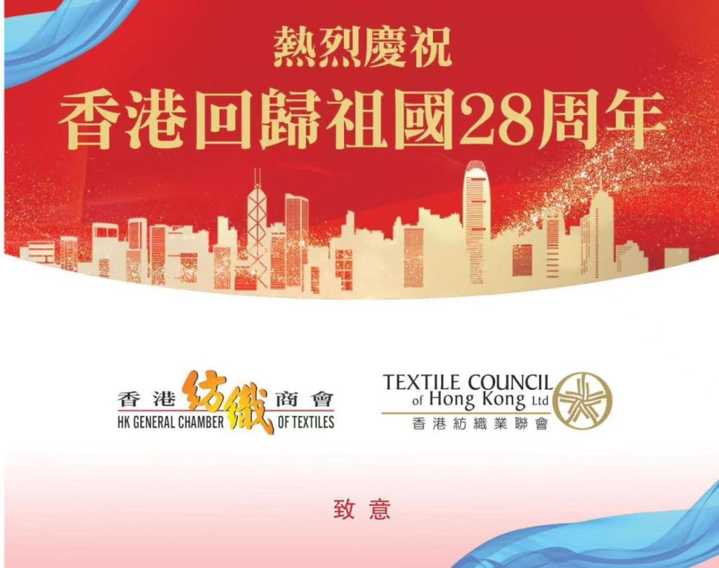 7月1日,值此香港回歸祖國28周年之際,特區政府於會展中心舉行慶祝酒會,香港紡織商會永遠榮譽會長潘陳愛菁女士、常務副會長兼秘書長蕭勁樺先生及常務副會長楊燕芝女士,以紡織及製衣界選委代表身份應邀出席,與來自政商學界等社會各界嘉賓共聚一堂,見證香港發展的重要里程碑。