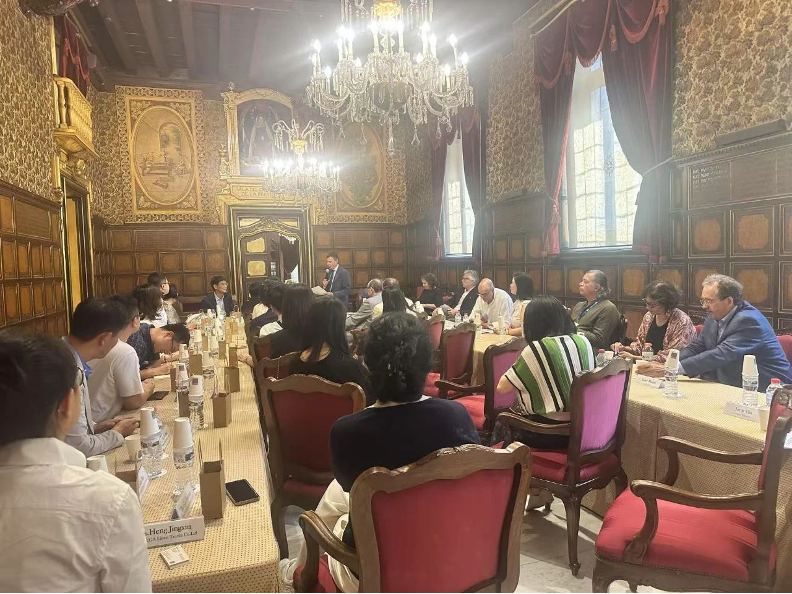 6月19日下午,代表團來到巴塞羅那歷史地標“絲綢之家”,與西班牙紡織聯合會高層及近20家本土紡織企業代表進行行業交流,並舉行商貿對接會。西班牙紡織聯合會會長Josep Maria Mestres先生在歡迎致辭中表示,選擇這座擁有500余年歷史的絲綢貿易古建築作為會談場地,恰如其分地象征著西班牙的紡織業悠久的歷史傳承。Mestres會長指出,西班牙紡織產業以特色鮮明的中小企業為主體,積極踐行可持續發展理念。為響應政府新出台的環保法規,行業全面推進綠色轉型,著力降低碳排放。他期待通過此次深度交流,開啟中西紡織企業長期互利合作的新篇章。