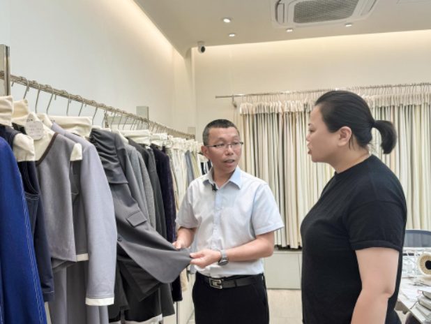 優品引商來,佳境留客駐。東市場對采購商的強勁磁吸力,既源於其經營戶的優質面料,也離不開市場環境的整體提升。在內部引導優化上,東市場通過精細化規劃購物通道、清晰指引標識等方面,幫助采購商縮短采購時間,提升采購效率;在外部環境提升上,其通過完善停車位布局、翻新外立面等設施完善,保障采購便捷順暢,提升整體消費體驗;在創新生態構建上,東市場引入設計師工作室、升級專業級直播廳,激發經營戶創新活力,拓寬商品展示渠道,形成強大的市場吸引力與行業競爭力。立足時尚化、高端化、品牌化定位,東市場持續發力,強化“中國時尚女裝面料第一站”的核心地位,積極構築新的價值核心。“下一步,東市場將通過加速整合頂尖設計資源、前沿趨勢信息與完善供應鏈,在二樓打造集‘設計研發、品牌孵化、精準對接’於一體的平台,突破傳統面料市場的局限。”孟偉東表示。