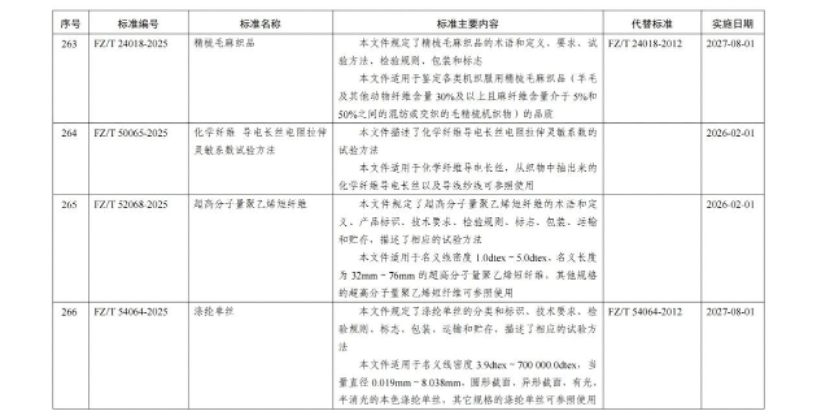 政策解讀|工業和信息化部批準46項紡織行業標準 / 國內消息, 香港紡織報 / 作者: wong chris 根據工業和信息化部 2025 年第 13 號公告,工業和信息化部批準了一批行業標準。在此次獲批的標準中,紡織行業佔據 46 項。 信息來源:工業和信息化部網站