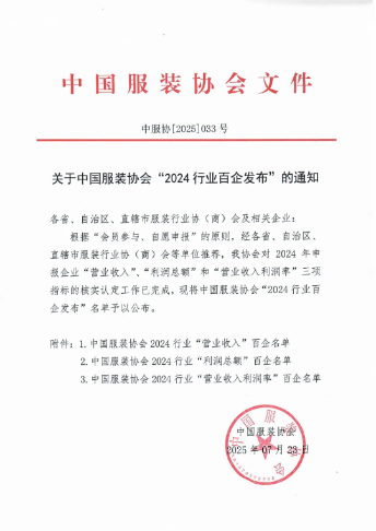 中國服裝協會2024行業“利潤總額”百企名單