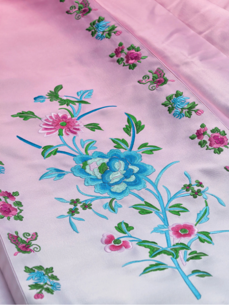 頒獎服裝設計不僅是一項專業任務,更是承載和傳遞文化精髓的重要媒介。設計團隊由生活在左·林棲設計工作室主創,團隊從2025年3月底啟動設計工作,將傳統粵繡技藝與非遺馬面裙元素同現代體育精神相結合,融入“一枝獨秀”的牡丹、蝴蝶等中國文化特色元素。歷時四個月的精工細作,最終成品於7月底正式完成。