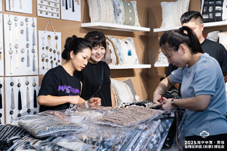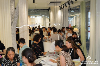 而一位來自江蘇南通的采購商,不僅積極參與了此次展會的“秀出自己”活動,進行了全套漢服妝造,也專程帶著自家3個孩子,參觀了“非遺東方 錦韻潮城”紡織非遺創意時尚展,與“2025年浙江歷史經典產業創新創意作品展”,讓孩子們充分感受傳統文化藝術與現代時尚結合的魅力——當然,自己的“工作”更是不能落下。“這次過來主要是想找找看有沒有好看、新穎的窗紗、布料和設計個性的窗簾輔料。目前來說感受深刻,商家非常給力,各家展廳空間布置和產品設計都很漂亮,款式也特別多,我已經找到了好幾家比較滿意的參展商。”