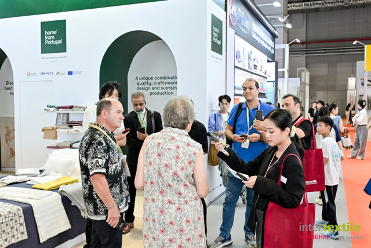 比利時家紡展區今年攜6家高端企業聯合參展,展現室內紡織品領域的領先實力。隸屬於Love Home Fabrics集團的Global Textile Alliance攜七大品牌系列亮相,產品覆蓋臥室、浴室、客廳及廚房等多重家居場景,現場人流如織、洽談熱烈,成為展區一大亮點。作為Intertextile的“老朋友”,比利時展區已連續十三年參展,充分彰顯出其在綠色材料、前沿設計與高端市場的全球競爭力。