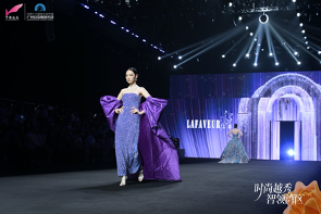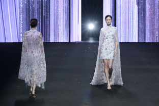 大秀現場,蕓想品牌通過非遺潮繡、廣繡珠片等傳統工藝與自主研發「繁花」面料的創新結合,將東方文化轉譯為服裝設計語言,配合光影交互的數字藝術舞台,構建出跨越時空的時尚對話。全球直播鏡頭記錄下這場打破東西方審美壁壘的視覺盛宴,彰顯品牌“以東方美學解構國際時尚”的核心理念。