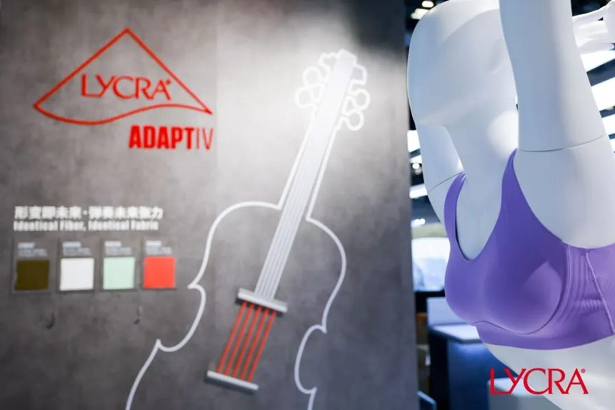 近年來,LYCRA® ADAPTIV(萊卡智合智纖®)、LYCRA FitSense®(萊卡®智塑®)等新產品、新技術推出後取得了顯著市場成績,獲得消費者廣泛認可。“萊卡公司始終以解決實際問題和推動行業進步為研發宗旨。”萊卡公司服飾業務亞洲副總裁王旭在采訪中舉例道,當前鋼圈文胸正逐漸減少,越來越多品牌轉向采用一片式結構的設計。這一轉變帶來了兩個現實問題,一方面許多消費者難以選到合身的文胸,容易出現空杯或底圍不適的情況;另一方面品牌方面臨高退貨率與庫存壓力,尤其在線上銷售中,尺碼不合適成為退貨主因,甚至有些品牌為覆蓋更多體型不得不增加SKU,反而加劇庫存風險。
