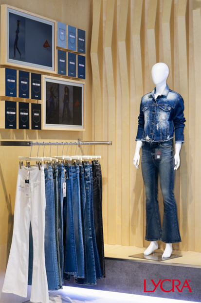 另一項創新代表LYCRA FitSense®(萊卡®智塑®)牛仔技術,則源於對人體不同部位對面料彈性和支撐差異需求的洞察。王旭表示,尤其在牛仔褲品類,女性消費者往往期待臀部區域具備更好的塑形效果。LYCRA FitSense®(萊卡®智塑®)技術通過成衣後處理階段對特定區域進行彈性調控,實現“定向塑形”。今年,LEE品牌率先應用這項技術推出針對亞洲市場的Lee Shape Magic美顏牛仔系列,主打提臀塑形的穿著體驗。這兩項創新技術正是萊卡公司基於消費者痛點和品牌現實需求所推出的代表性解決方案,也是其消費洞察與產業鏈協作的典型成果。