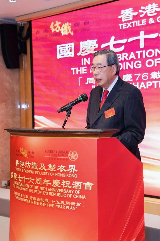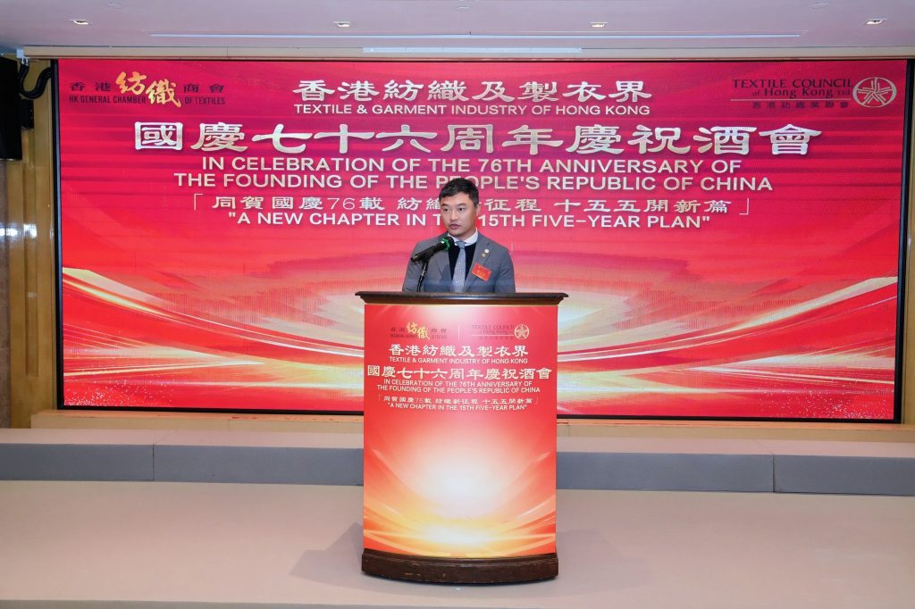 代表紡織及製衣界的立法會議員陳祖恒先生亦發言指出,行業在改革開放以來一直是愛國愛港的中堅力量。他感謝特區政府持續聽取業界建議,在新一份《施政報告》中延續「還息不還本」、增撥BUD基金等多項措施。他表示:「我們希望透過業界『生產出海、品牌出海、市場出海』,為國家現代化建設及香港經濟注入新動能。」
