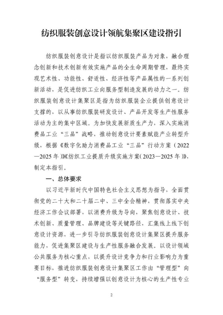 產業集群|工信部:到2027年形成一批特色鮮明的“紡織服裝創意設計領航集聚區” / 國內消息, 香港紡織報 / 作者: Ann 據工業和信息化部消息,工業和信息化部近日印發《紡織服裝創意設計領航集聚區建設指引》,提出到2027年,形成一批特色鮮明的“紡織服裝創意設計領航集聚區”,創意設計要素賦能產品創新和品牌成長的作用更加突出,探索形成以創意設計賦能我國紡織服裝產業高質量發展的關鍵路徑。到2030年,圍繞“紡織服裝創意設計領航集聚區”初步建成具有全球競爭力的創意設計體系、引領國際消費市場趨勢的產品體系和掌握國際市場話語權的品牌體系,擁有一批具備自主知識產權的優勢品牌企業。 (來源:工業和信息化部)