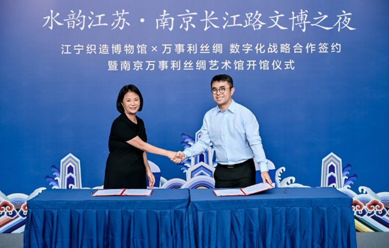 本次合作聚焦“文化+科技+旅遊”深度融合,旨在打造“博物館+”與“絲綢+”新業態,推動南京文旅與文博新質生產力的創新發展。萬事利絲綢將依托其在人工智能設計、個性化定制、數字環保印染等領域的技術優勢,與江寧織造博物館深厚的歷史文化IP深度嫁接,同時聯動館內“大夢紅樓”全場域行進式近景沈浸體驗項目,構建長江路上“內容-體驗-消費”一體化的文化消費新場景。