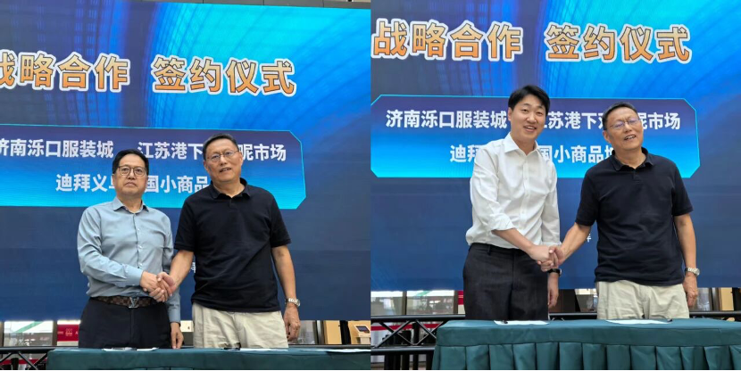 在阿聯酋開展交流期間,山東濟南濼口服裝城、江蘇無錫雙面呢市場分別與迪拜義烏中國小商品城簽署了戰略合作協議。
