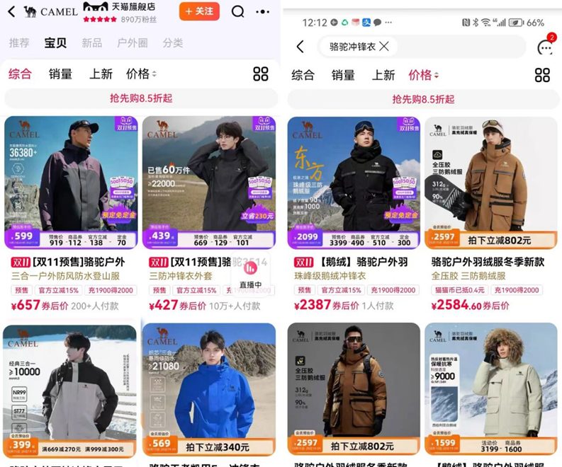 駱駝則選擇主打大眾市場,面向戶外運動小白以及學生群體,突出性價比,價格只需數百元,且產品兼有功能性,又往“時尚穿搭”上靠。