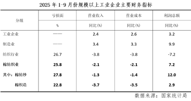 進入“金九銀十”,棉紡織市場有所好轉,從主要經濟指標看,行業呈現積極地觸底反彈跡象,低基數下,棉紡織利潤保持了較高增速,帶動利潤率站穩“2”字頭,虧損面降至年內新低,且虧損企業虧損額同比大幅收縮,與整個大紡織相比,棉紡織虧損面更低,利潤增速優勢明顯。但也要看到,棉紡織營業收入連續5個月累計同比下降,棉紡紗和棉織造持續分化的態勢仍在延續,行業面臨的形勢依然較為嚴峻復雜。