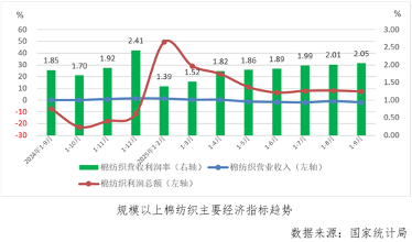 一、棉紡織業——營收降利潤增,推升利潤率繼續回升