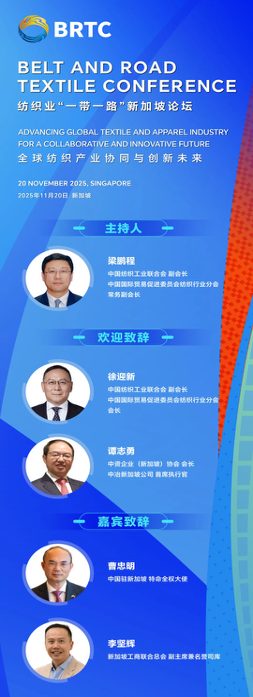 2025年正值中新建交三十五周年,已成功舉辦六屆的中國紡織業“一帶一路”大會將首次邁出國門,以“紡織業‘一帶一路’新加坡論壇”的形式,於2025年11月20日在新加坡金沙會展中心隆重啟幕。這不僅是中國紡織業以高水平對外開放促進全球協同創新的重要舉措,也將成為全球紡織產業共建韌性供應鏈、邁向可持續發展的關鍵契機。