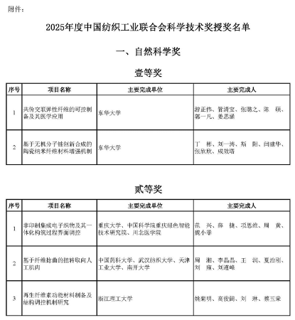 2025年度中國紡聯科技獎共評選出自然科學獎、技術發明獎和科技進步獎52項(其中一等獎14項,二等獎38項),桑麻學者獎4人。這些獲獎項目都凝結著行業科技工作者的智慧與堅守,其價值不僅體現在理論和技術突破上,更在於對產業實踐的深刻改變。四位桑麻學者獎獲得者在引領行業基礎研究前沿方向、攻克關鍵共性技術瓶頸、培育高水平創新平台與人才隊伍等方面,既發揮了定盤星般的堅實支撐作用,更擔當了領航者般的方向引領角色。