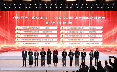 11月29日,2025中國·中大面料創新競賽頒獎儀式在廣州隆重舉行。中國紡織工業聯合會秘書長夏令敏,中國紡織工業聯合會流通分會會長徐建華,中國紡織工業聯合會流通分會副會長、中國紡織工業企業管理協會副會長兼秘書長王水元,廣州市商務局副局長羅政,廣州市工信局副局長黃星耀,廣州市海珠區副區長陳宇,廣州市海珠區科技工業商務和信息化局局長麥錳錳等領導出席了頒獎儀式。