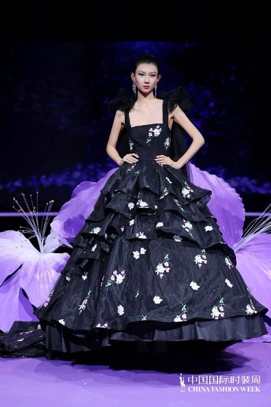 花朵是自然的精靈,是情感的隱喻,更是東方哲學中生生不息的生命力象征。2025年3月那場“隨心之約”大秀,被業界譽為“一封寫給‘她力量’的情書”。秀場上,從職場精英的利落小禮服,到母親角色的溫婉長袍,再到少女夢想的蓬蓬紗裙,四十余套造型勾勒出女性生命的豐盛圖譜。最動人的一幕,莫過於身著白色繁花蓬蓬裙的小花童,與壓軸那件耗費50米獨家面料、如黑色花朵般綻放的超大拖尾禮服的先後登場。“從童真到盛放,女性之美貫穿生命的始終。我們設計的,不只是衣服,更是陪伴女性成長的‘戰袍’與‘鎧甲’。”關淑敏解釋道。