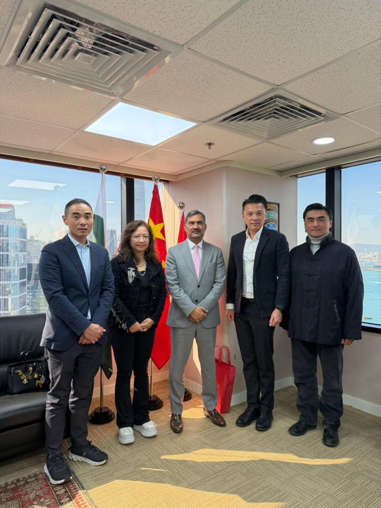2026 年 1 月 8 日,香港紡織商會代表團,包括:立法會議員(紡織及製衣界)、香港紡織商會常務副會長陳祖恒;香港紡織商會常務副會長詹嘉莉;香港紡織商會副會長劉培杰;香港紡織商會特邀榮譽顧問邱允恭拜訪巴基斯坦總領事Mr. Shaikh Riaz Ahmed,雙方就加強跨境時裝及紡織合作進行深入交流。會上探討以香港為樞紐,促進巴基斯坦、中國及東盟間的設計師交流與展會合作。雙方將分享優勢產品及設計師資料,加強互動合作。