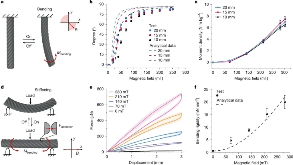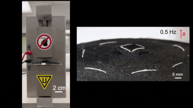 ▲ 這種軟磁聚合物複合纖維以電力驅動、支持編程控制,同時兼具輕量、柔韌和透氣的紡織特性。