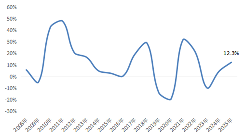 圖4 2008~2025年化纖行業固定資產投資增速變化