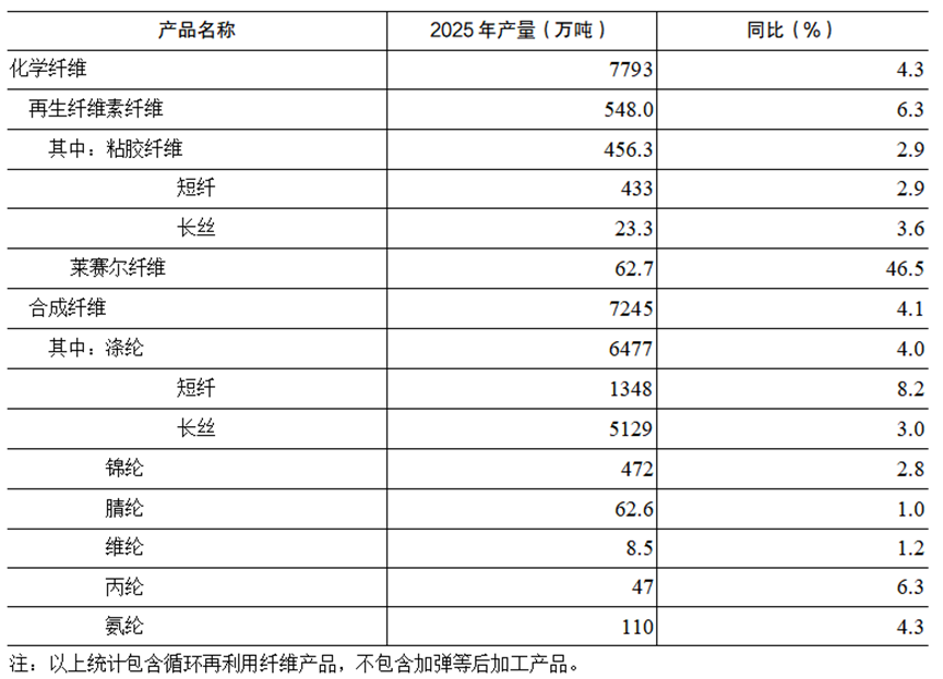 表1 2025年中國化纖產量完成情況