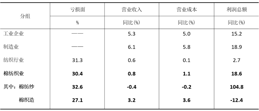 一、棉紡織業——利潤同比大幅增長,利潤率指標存隱憂