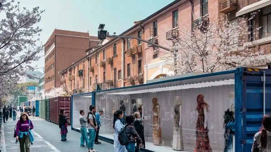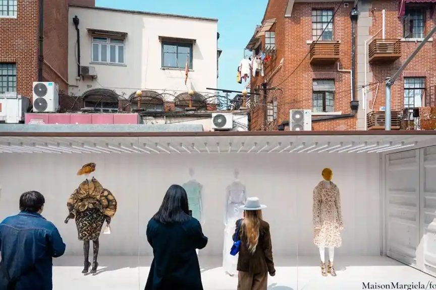 秀後,Maison Margiela在雁蕩路推出持續多日的“Artisanal 高級定制”展覽。在法式花園洋房的紅磚肌理前,58 套Artisanal高級定制造型首度在開放式街區公開展示,市民遊客在上海街頭便能近距離欣賞高定作品的設計理念與精湛工藝。