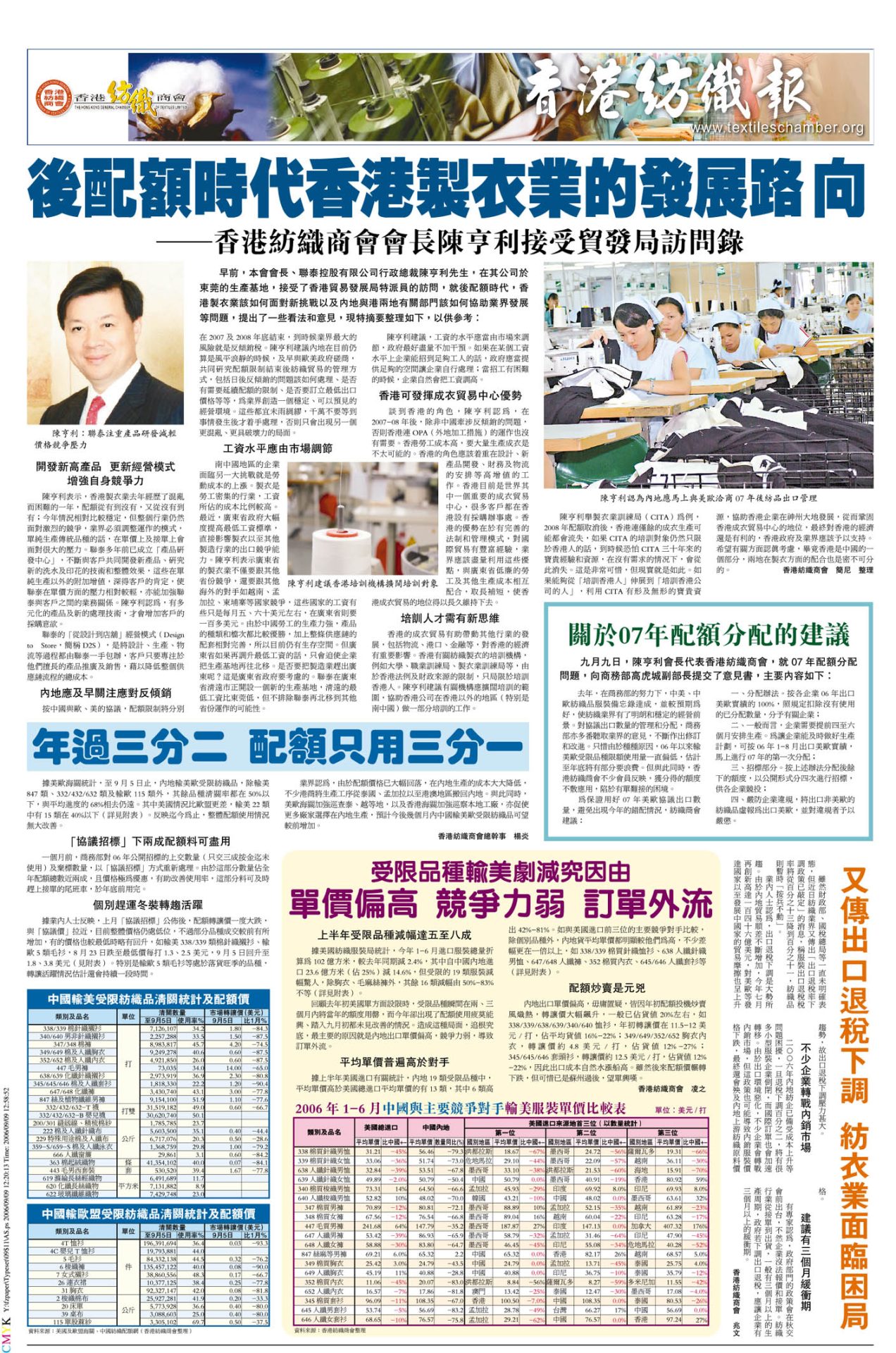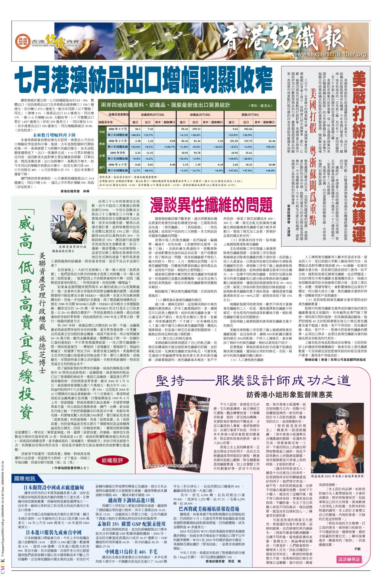 紡織報第19期-2006年9月8日出版
