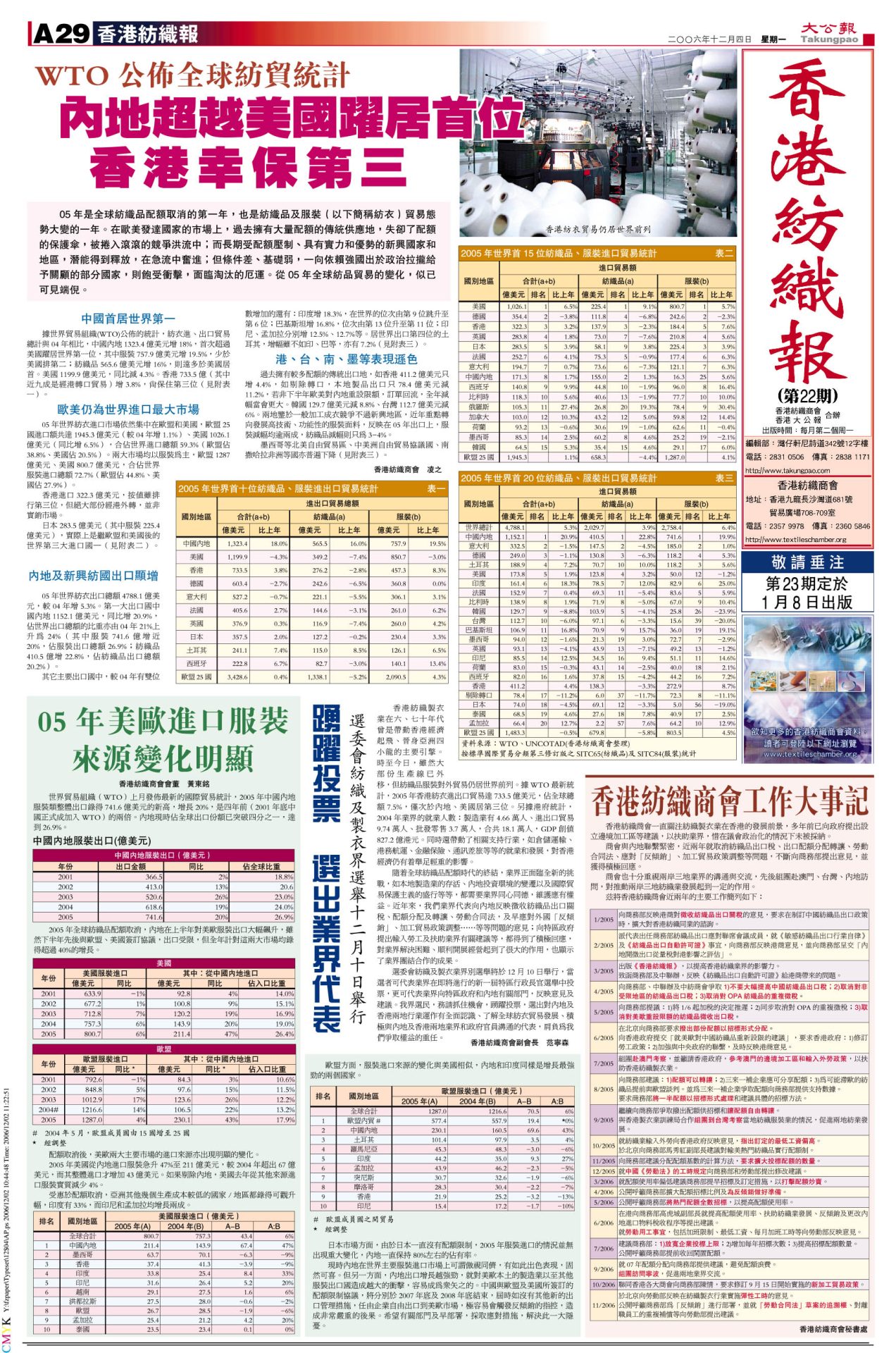 紡織報第22期-2006年12月4日出版