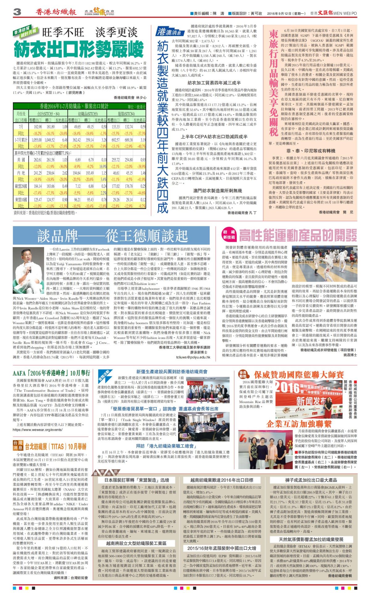 紡織報第127期-2016年9月12日出版