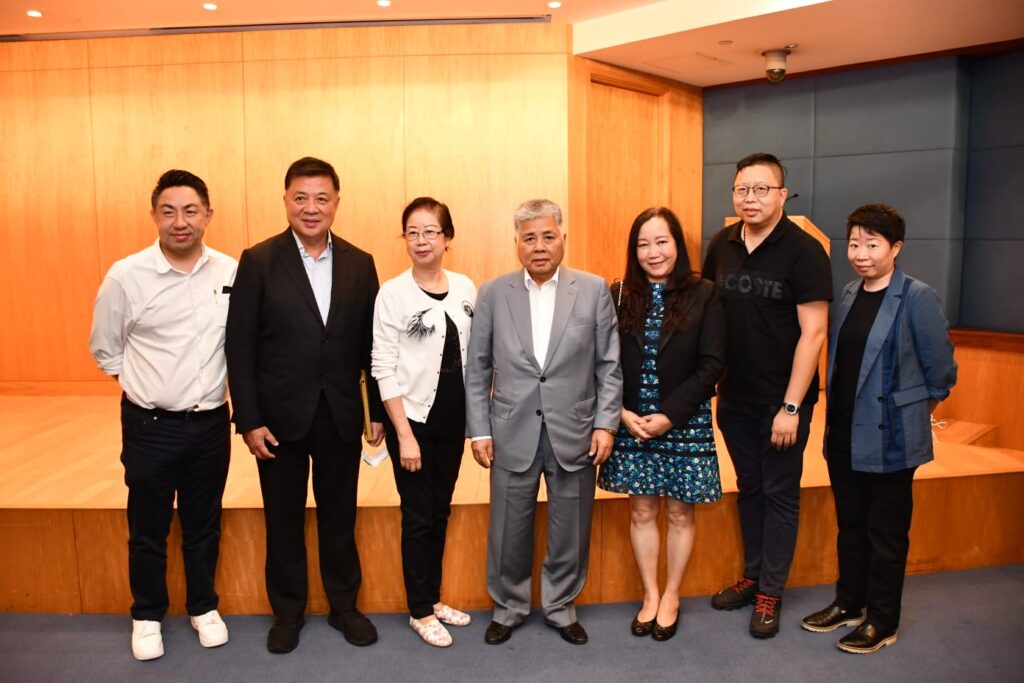 7月9日,会长朱立夫(左一)出席参观香港城市大学邵逸夫创意媒体中心,与创意媒体学院的教研人员互相交流,讨论将新创意媒体技术及创新思维应用到时装业的可行性。(图2)